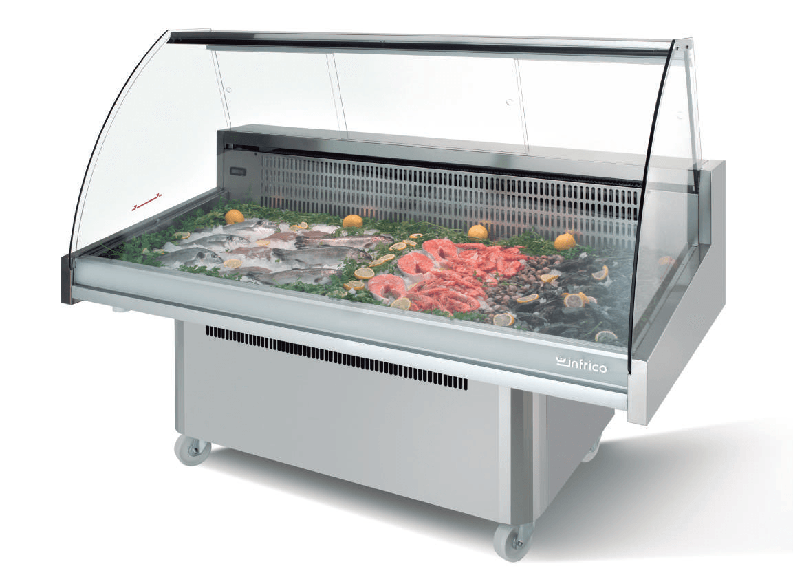 - Static by gravity coil and cold plate refrigeration system on the bottom
